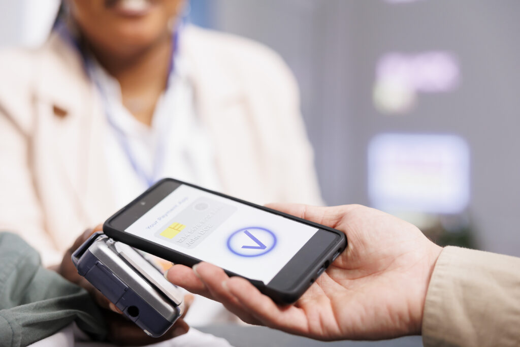 O cliente só precisa encostar o celular, relógio ou outro dispositivo compatível na maquininha, e a transação é concluída em segundos, com a mesma autenticação biométrica ou por senha.