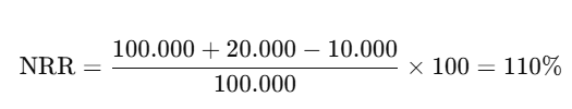 Nesse exemplo, sua NRR é de 110%, o que indica que sua base atual está crescendo e compensando totalmente as perdas — um sinal positivo de saúde financeira e retenção eficiente.