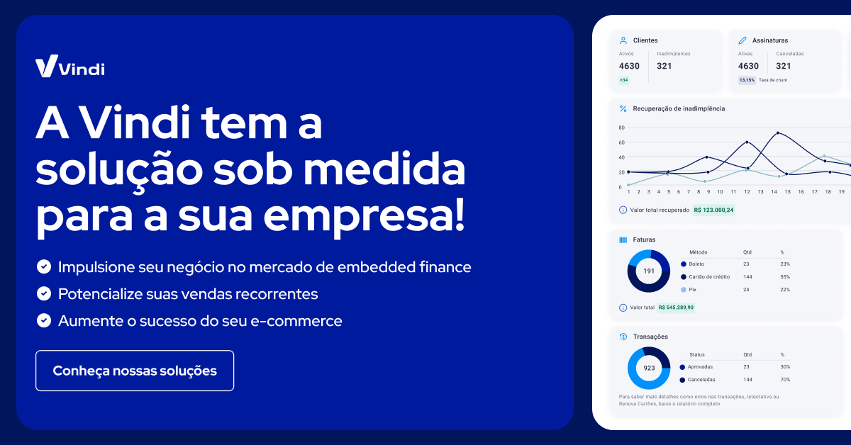 - Plataformas de pagamentos: além de facilitarem a cobrança e diversificarem as formas de pagamento, sistemas como o da Vindi podem emitir relatórios com dados que facilitam o acompanhamento das vendas.