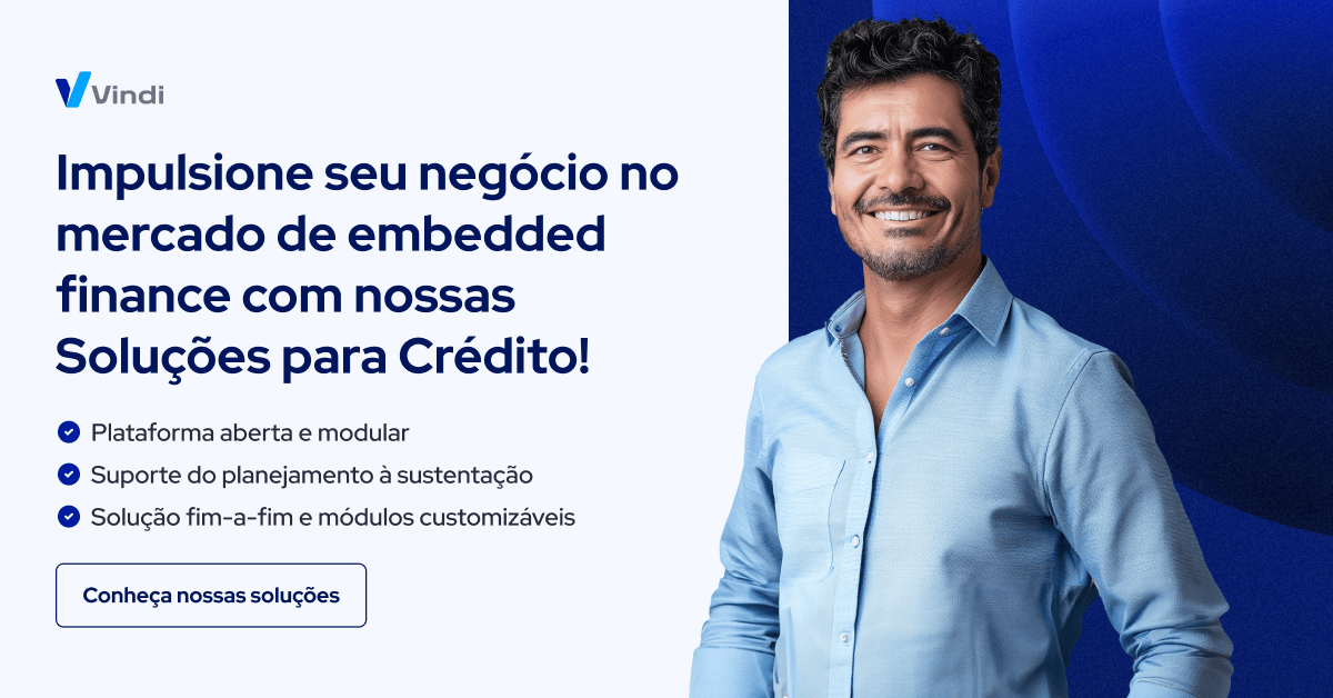 A Vindi conta com uma solução completa, que pode colocar sua empresa no mercado de crédito enquanto você segue mantendo foco no seu core-business – a atividade principal do seu negócio.